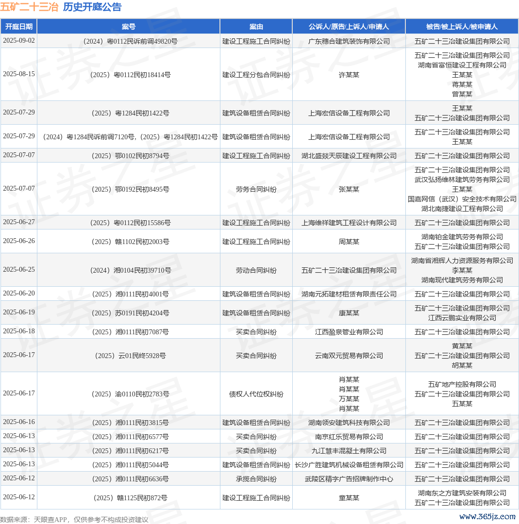 本站消息日富农优配,根据天眼查APP显示,近日公布了一则五矿二十三冶建设集团有限公司作为被告/被上诉人的开庭公告,详细内容如下: